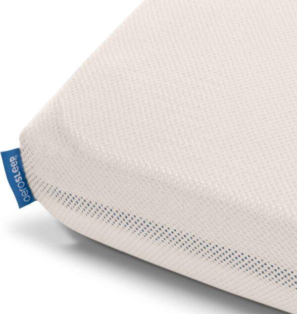 Het AeroSleep polyester hoeslaken is een elastisch hoeslaken in ademende stof dat speciaal is ontwikkeld voor het AeroSleep-concept. AeroSleep Baby Fitted Sheet garandeert een maximale luchtdoorlaatbaarheid door middel van de 3D honingraatstructuur. Hierdoor biedt het uw baby een vrije ademhaling, een droog slaapcomfort en een aangename zachtheid. Dit hoeslaken is wasbaar op 60°C. Hierdoor geniet uw baby telkens opnieuw van een zuiver en gezond slaapoppervlak.