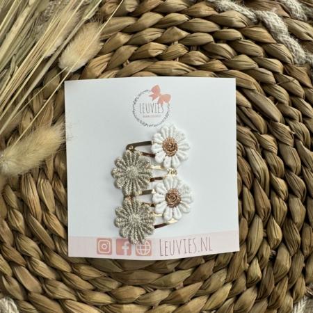 • Leuvies setje van 4 klikklak haarspeldjes – Daisy gold en cream brown