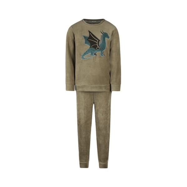 Voor stoere jongens met een grote fantasie! Deze Charlie Choe velours pyjamaset in donkergroen is superzacht en perfect voor avontuurlijke dromen. De pyjamatrui is versierd met een coole draakapplicatie. De bijpassende velours pyjamabroek zorgt voor een comfortabele fit tijdens alle relaxmomenten. Warm, stoer en heerlijk zacht: ideaal voor knusse herfstavonden.