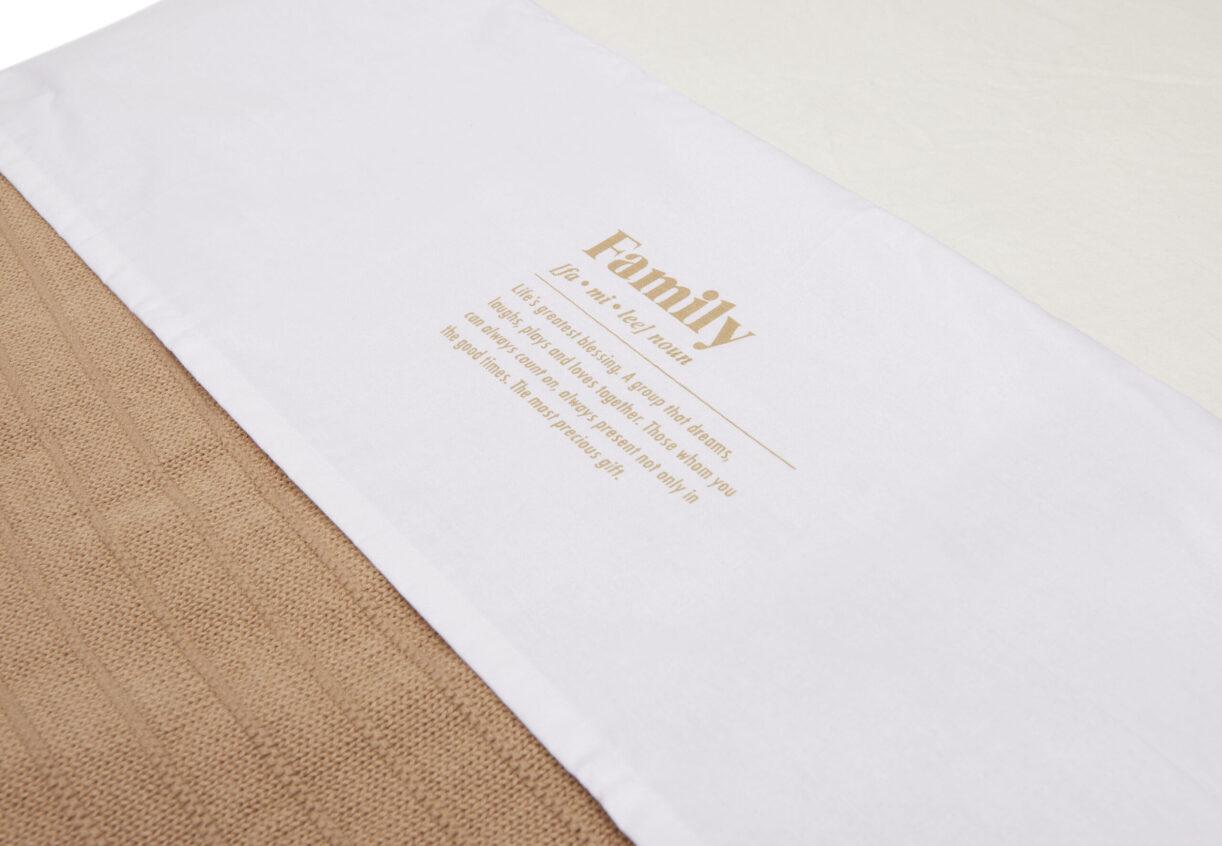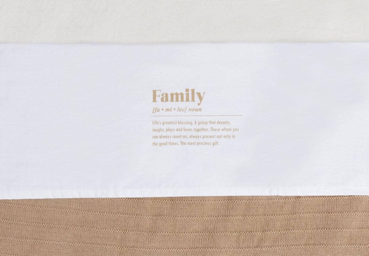 Met een wit lakentje kun je het bedje van jouw baby veilig, kort en strak opmaken. Door de zijkanten van het lakentje onder het matrasje te stoppen, slaapt jouw kleintje niet alleen veilig, maar heeft het ook een geborgen gevoel. Dit lieve lakentje met de tekst ‘Family’ past perfect bij de dekens uit het Pure knit thema van Jollein. Met een klamboe of sluier in de kleur Biscuit maak je het kamertje van jouw kleintje helemaal af!
