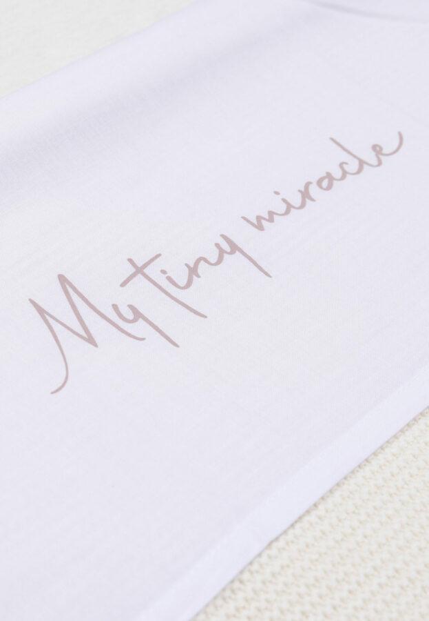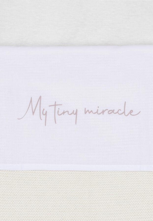 Hoe cute is dit lakentje? De lieve tekst ‘my tiny miracle’ staat afgebeeld op de boord van het lakentje. Nu je kleintje er onder ligt te slapen is het helemaal onweerstaanbaar. Combineer dit lakentje bijvoorbeeld met het Grain Knit dekentje. Een lakentje zorgt ervoor dat jij je kleintje veilig en strak kan instoppen en het beschermt het dekentje tegen vlekjes van bijvoorbeeld spugen. Shop het lakentje in Olive Green, Wild Rose of Funghi of natuurlijk allebei. Ook is hij verkrijgbaar voor zowel de wieg als het ledikant.