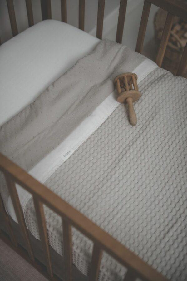 Deze deken van wafelstof is gevoerd met heerlijk zachte fleece van 100% katoen en is daarom bij uitstek geschikt voor alle seizoenen. In combinatie met een Koeka laken, slaapt je kleintje het hele jaar rond comfortabel onder dit dekentje. De Koeka dekens zijn gemaakt van hoge kwaliteit materialen en zijn daarom eindeloos te wassen zodat je er jarenlang plezier van kan hebben. De deken is verkrijgbaar in meerdere trendkleuren dus er is er zeker ook een die bij jouw kinderkamer past.