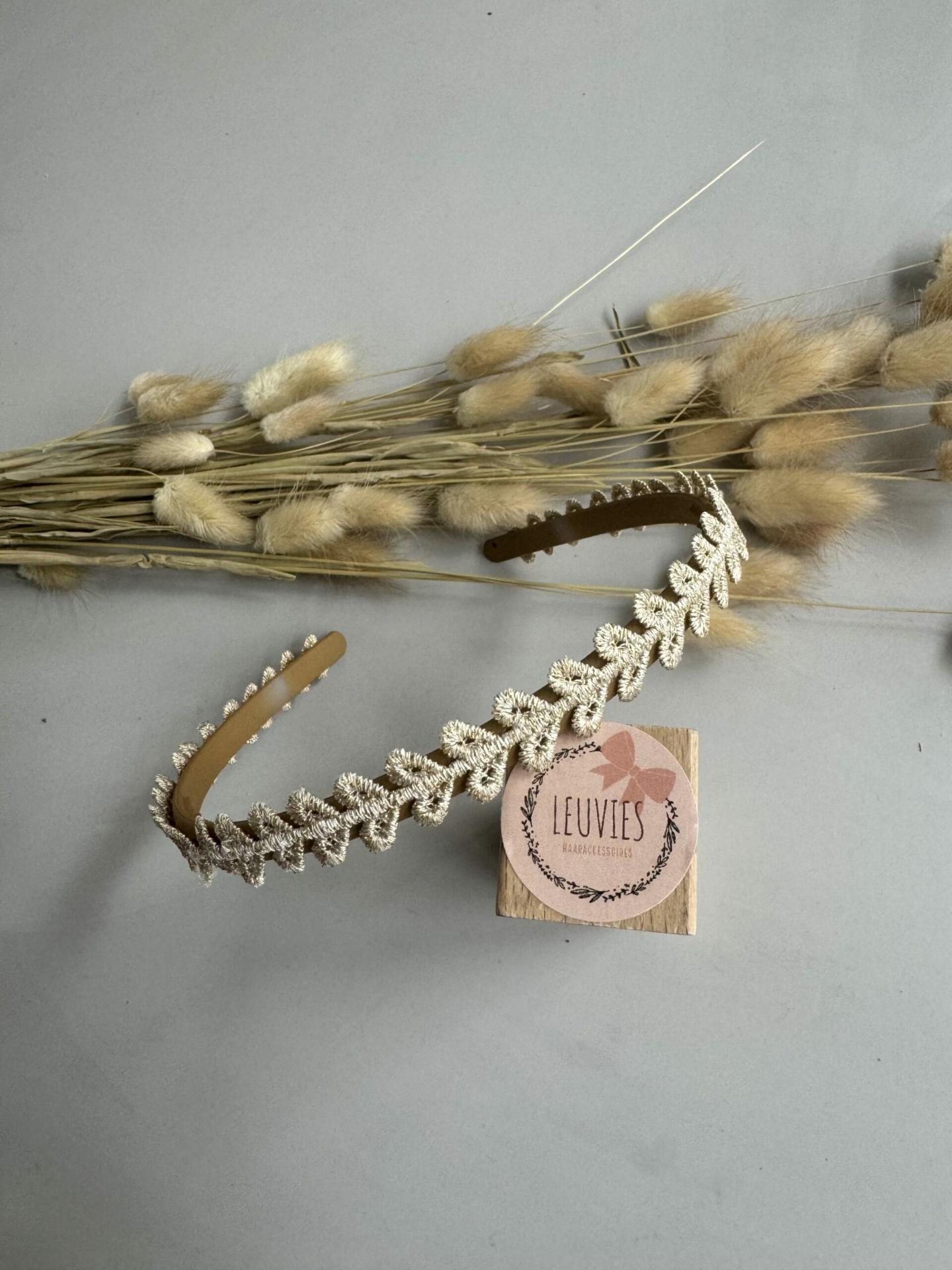 Leuvies diadeem Fenne – goud kant hartjes