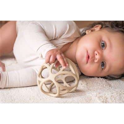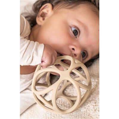 Deze zandkleurige Little Dutch Gripping Ball heeft geometrische vormen en de bal is ontworpen om gemakkelijk te zijn voor kleine handen om te grijpen. De bal is mooi en licht, dus ideaal voor je kleintje om mee te spelen. Het materiaal is leuk om op te bijten als je kleintje doorkomt. De siliconen grijpbal heeft een diameter van 10 centimeter en is gemaakt van 100% siliconen.