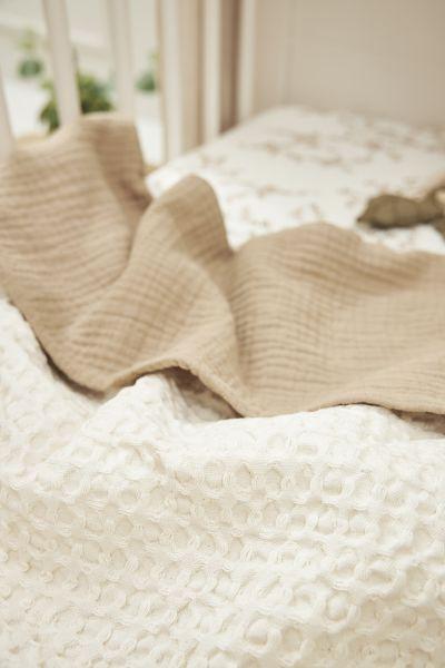 Deze deken is gemaakt van 100% katoenen wafelstof aan de voorkant en heeft een achterkant van heerlijk zacht katoen. De deken heeft TOG-waarde 1.0. Hoe hoger de TOG-waarde hoe warmer het product voor jouw kleintje.