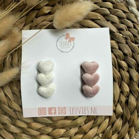 • Leuvies setje van 2 antislip haarspeldjes – hartjes velvet – pink / cream
